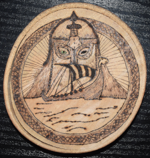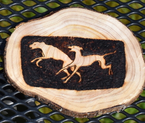 Pyrography is the craft of burning or charring designs on to materials such as wood, leather or bone.